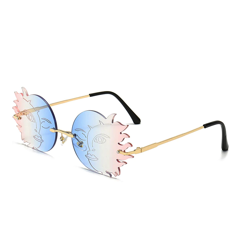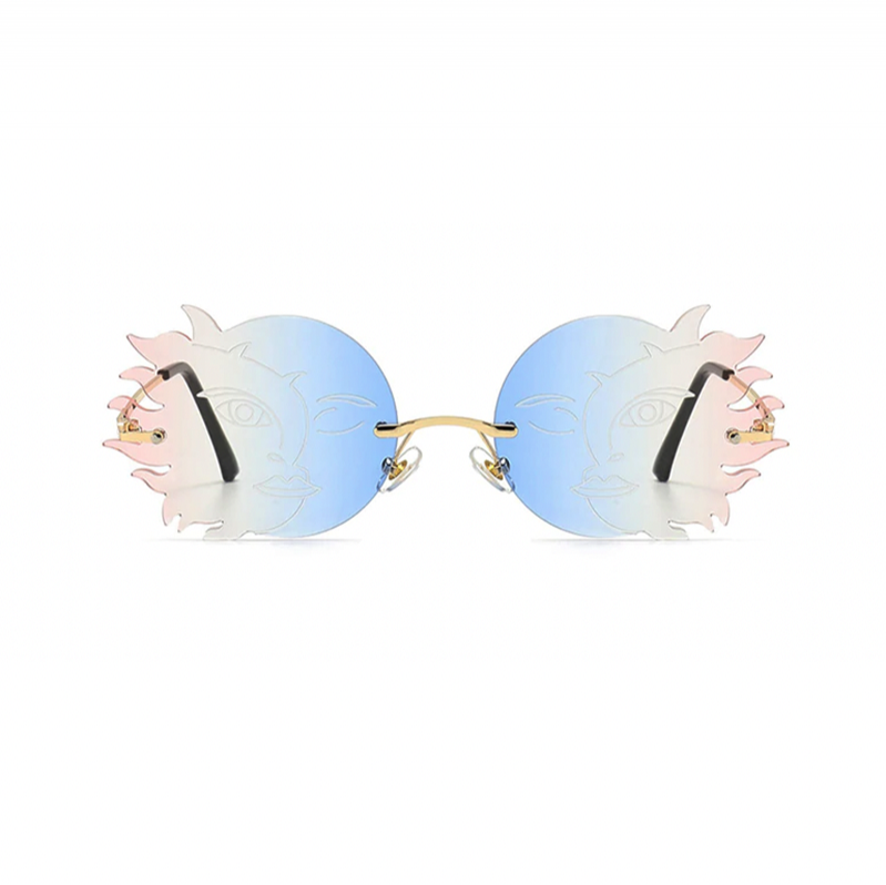 Lunettes de soleil "Spirit" avec branches couleur or et verres bleu et rose. La paire parfaite pour aller en pool party.