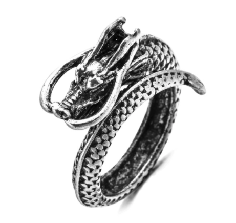 Bague "Big Dragon" couleur argenté avec taille ajustable à votre doigt.