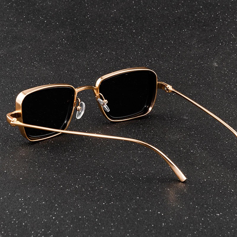 Lunettes de soleil "Monaco" avec branches couleur or et verres noir. Pour passer la frontière monegasque sans encombre.